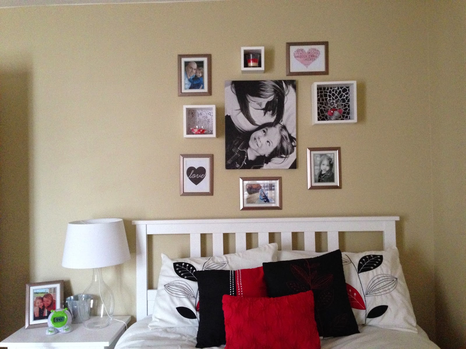 Jennifer started off with the canvas print in the middle and wanted to do a gallery style around it. She chose simple picture frames that all matched since there would be mixed media. She used two wall art designs with one of them being our giveaway today: the bottom left heart with love written in it.